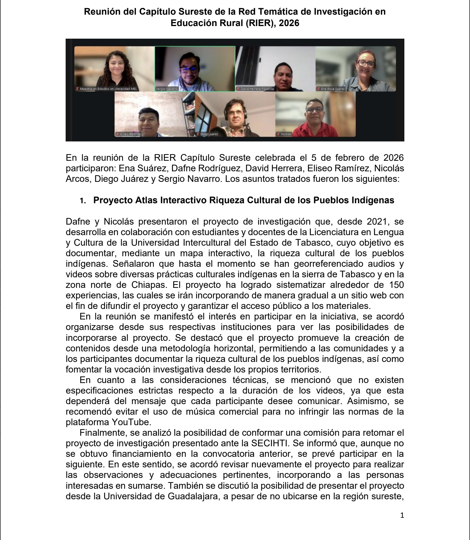 Sexta Reunión Virtual